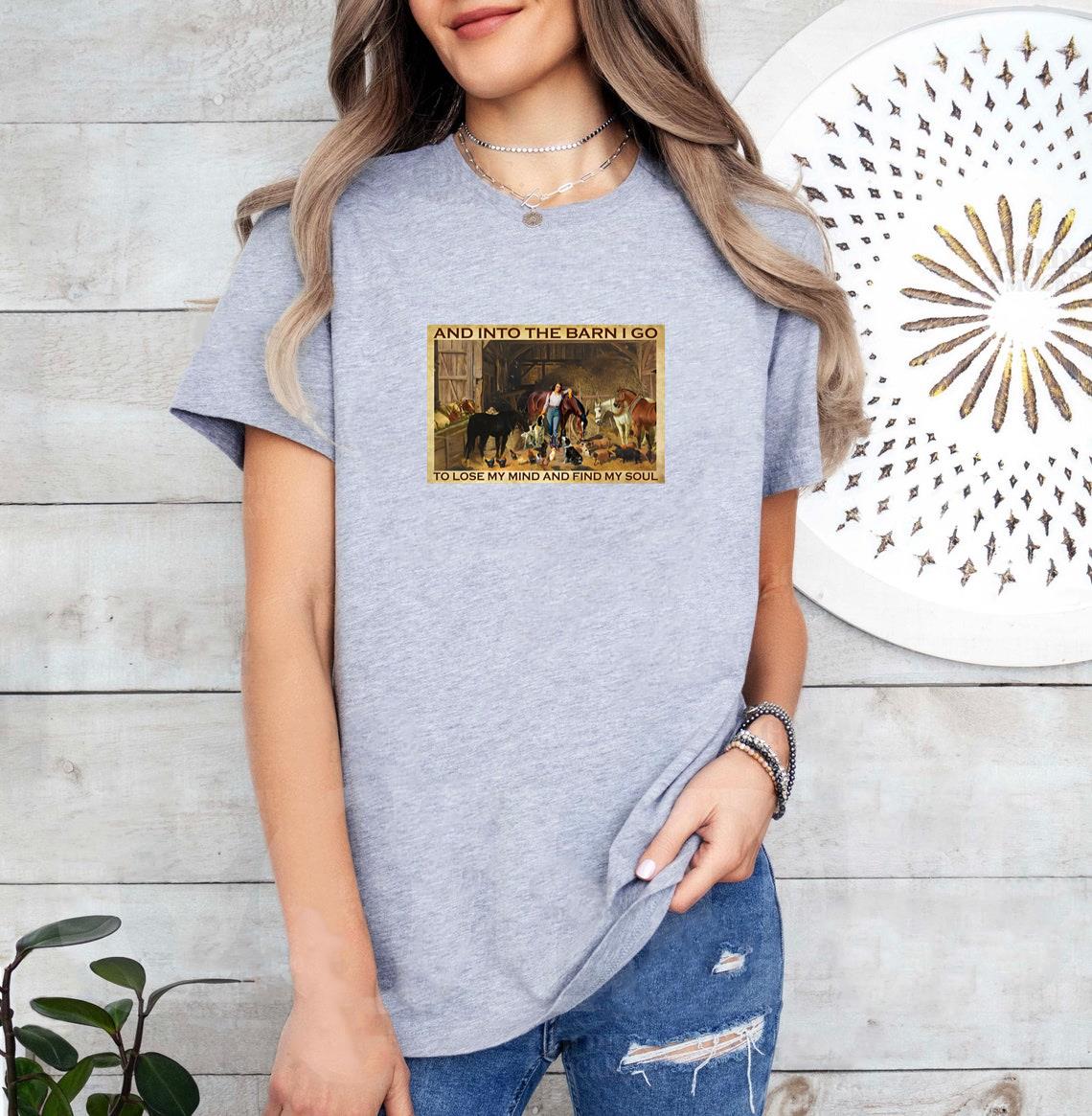 Comfy, casual, and always in style, this And Into The Barn I Go Horizontal Poster T-Shirt T-shirt is perfect for daily wear or easy gifting.