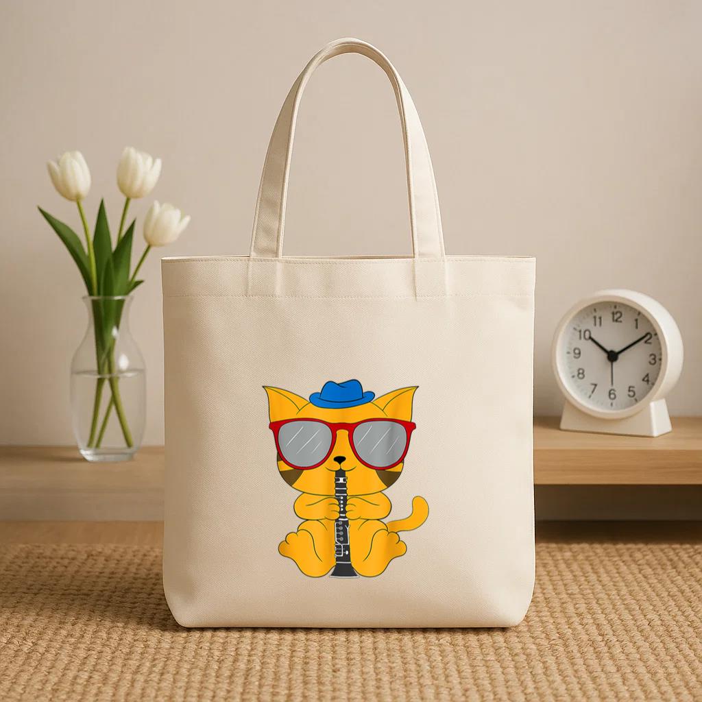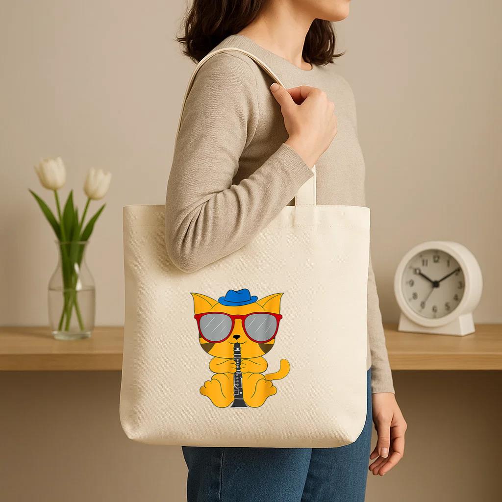 Chic, durable, and reusable , this Cat Wearing Sunglasses Playi Oboe Clarinet Instrument Canvas Tote Bag Canvas Tote Bag is your daily go-to or a thoughtful gift for any occasion.