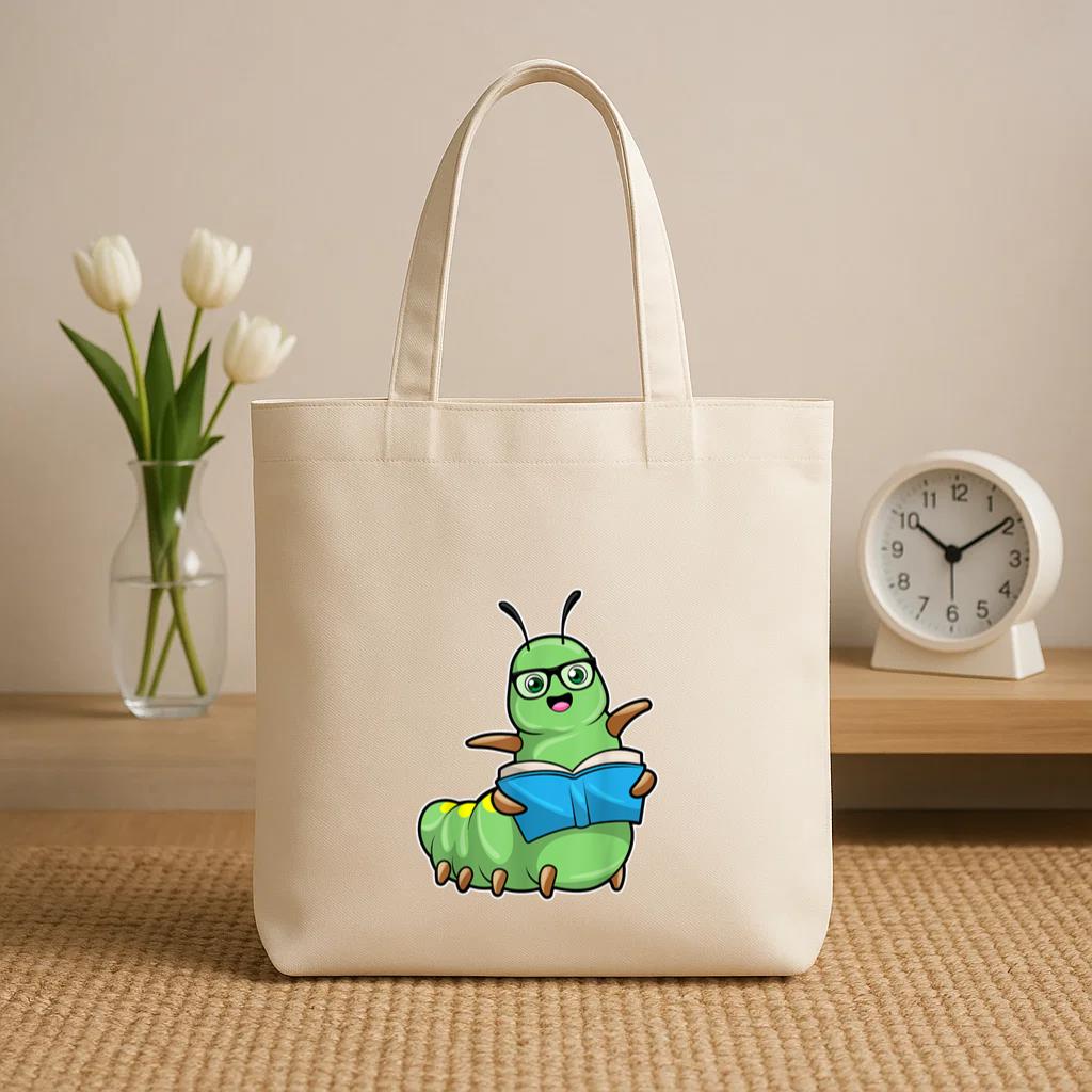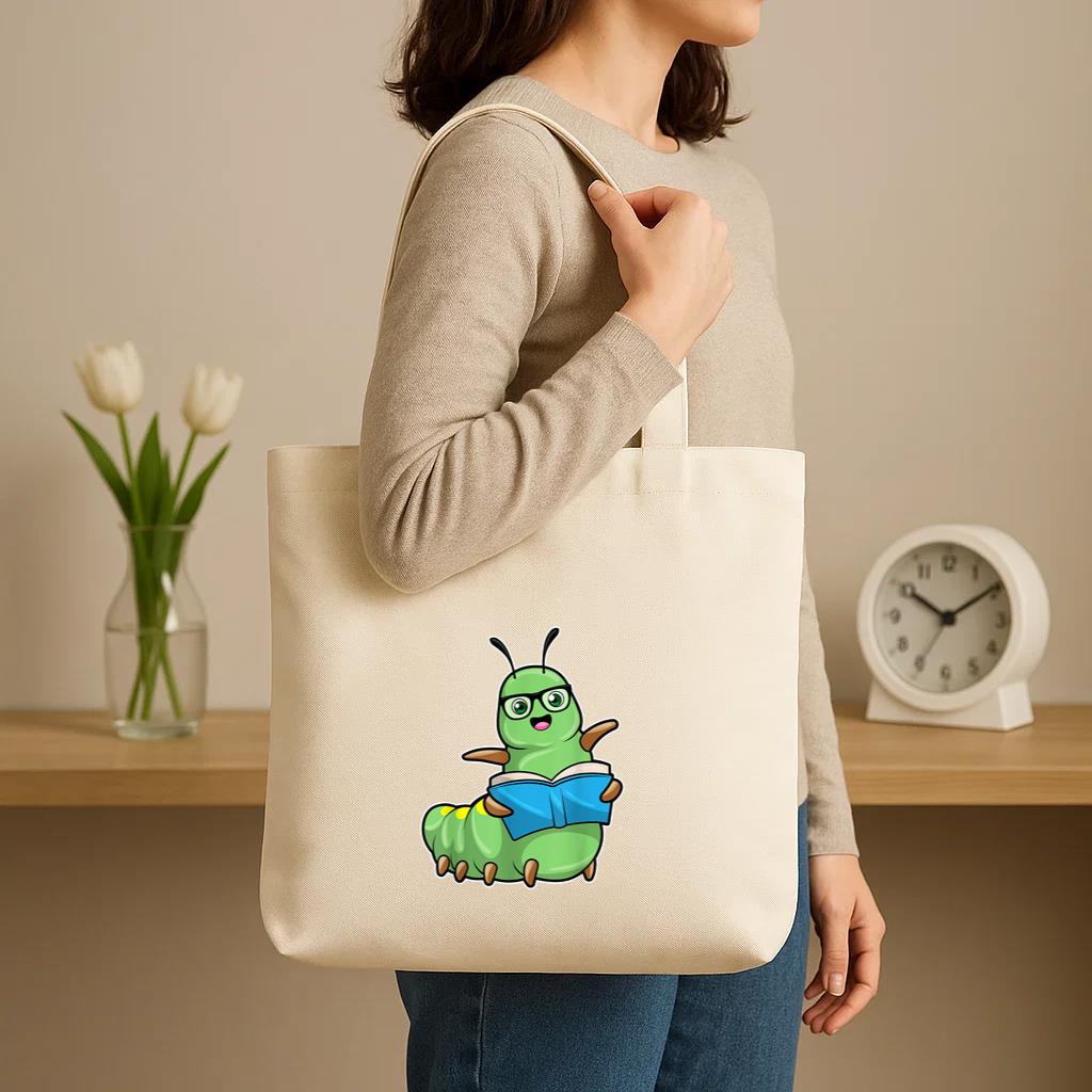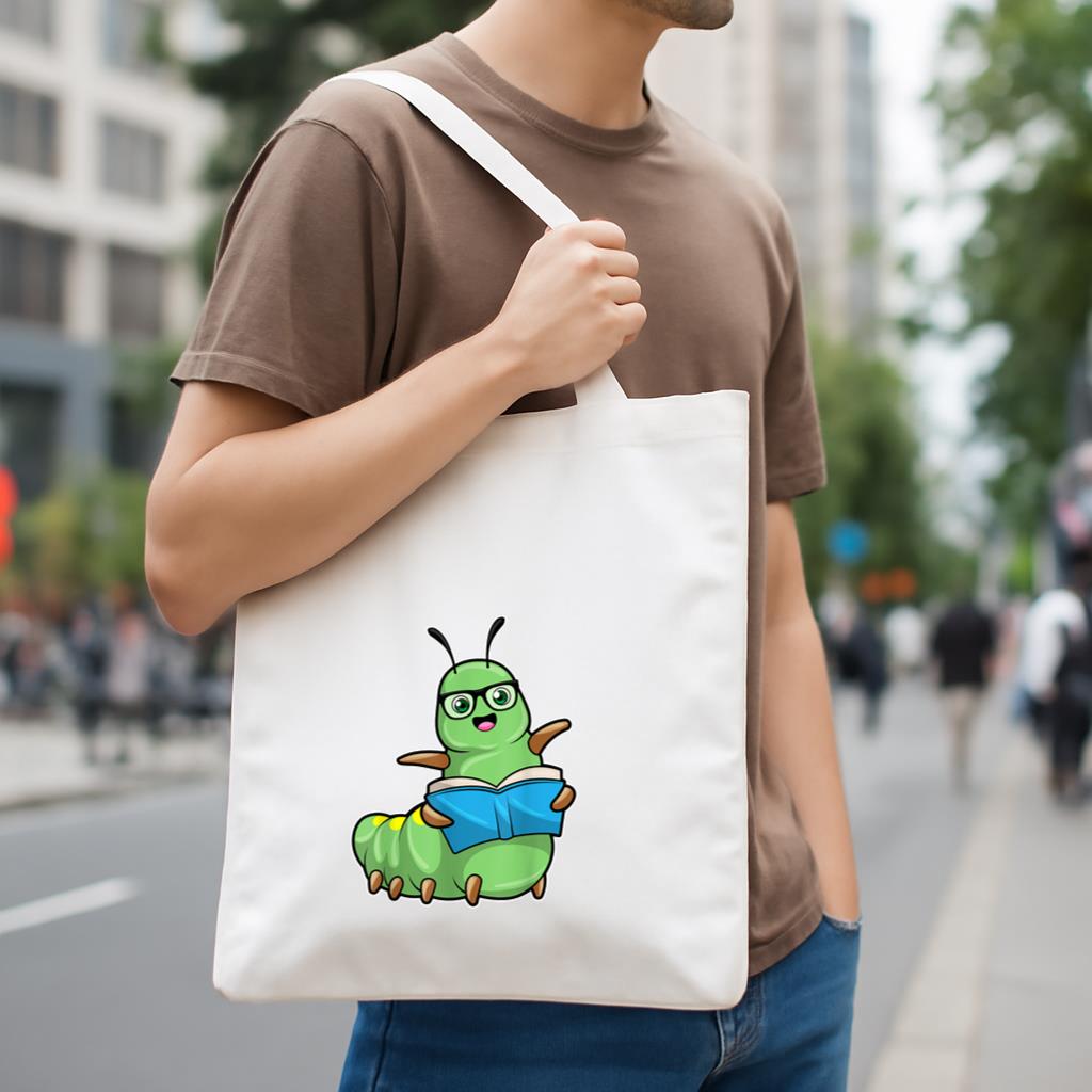 Chic, durable, and reusable , this Caterpillar Nerd Book Canvas Tote Bag Canvas Tote Bag is your daily go-to or a thoughtful gift for any occasion.