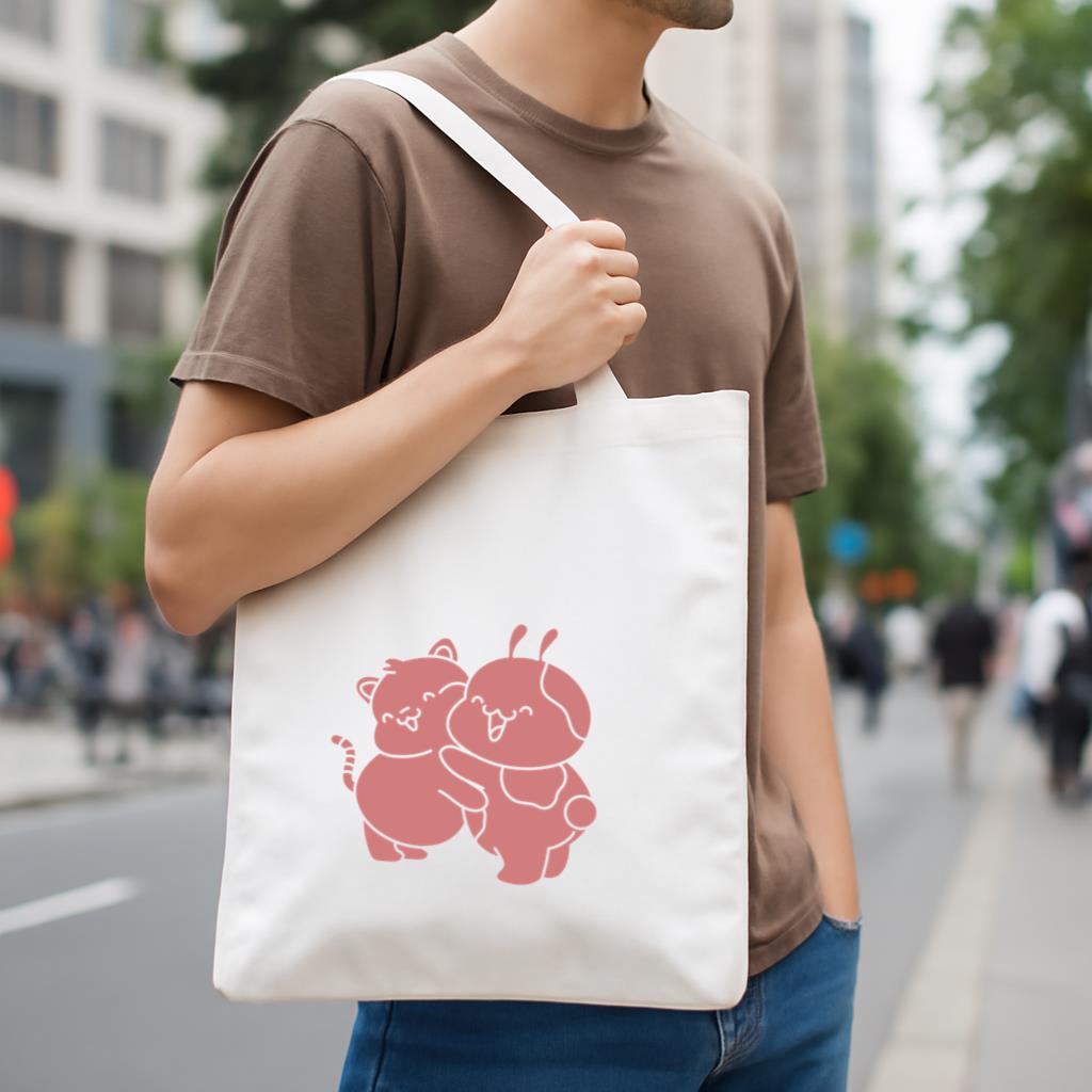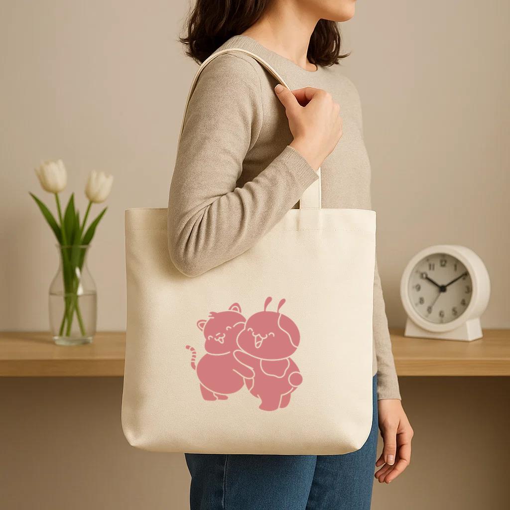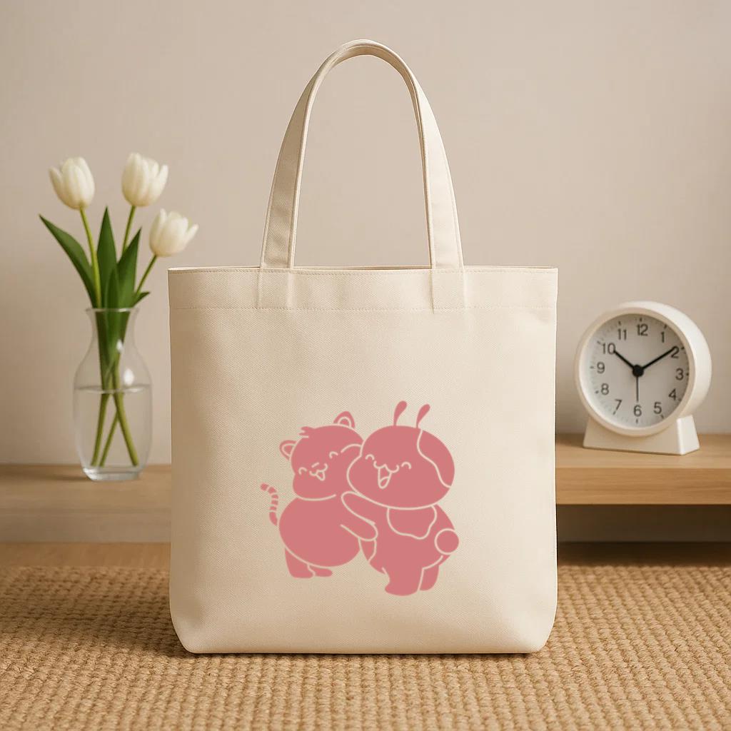 Chic, durable, and reusable , this Cute Pink Cartoon Animals Hugging Canvas Tote Bag Canvas Tote Bag is your daily go-to or a thoughtful gift for any occasion.
