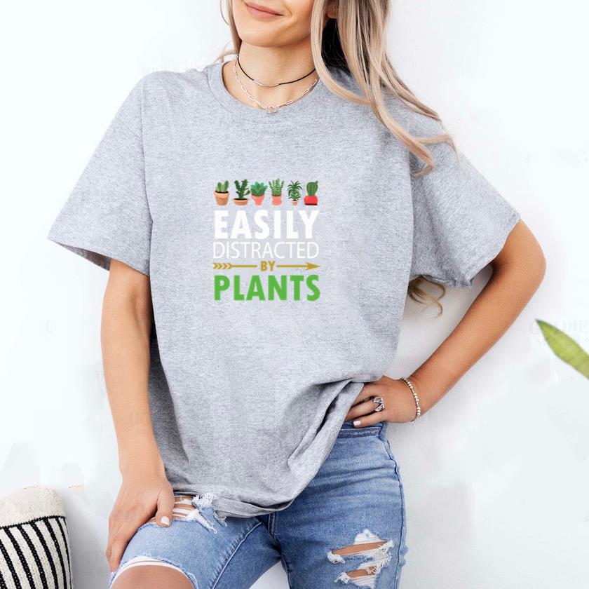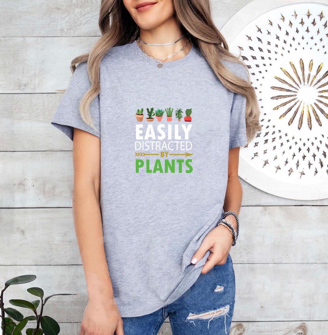 Comfy, casual, and always in style, this Easily distracted by plants T-Shirt T-shirt is perfect for daily wear or easy gifting.