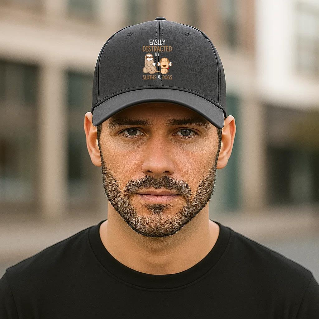 Top off any outfit in style , this Easily Distracted By Sloths And Dogs Cotton Baseball Hat Cotton Baseball Hat is a must-have for sunny days or sporty looks.