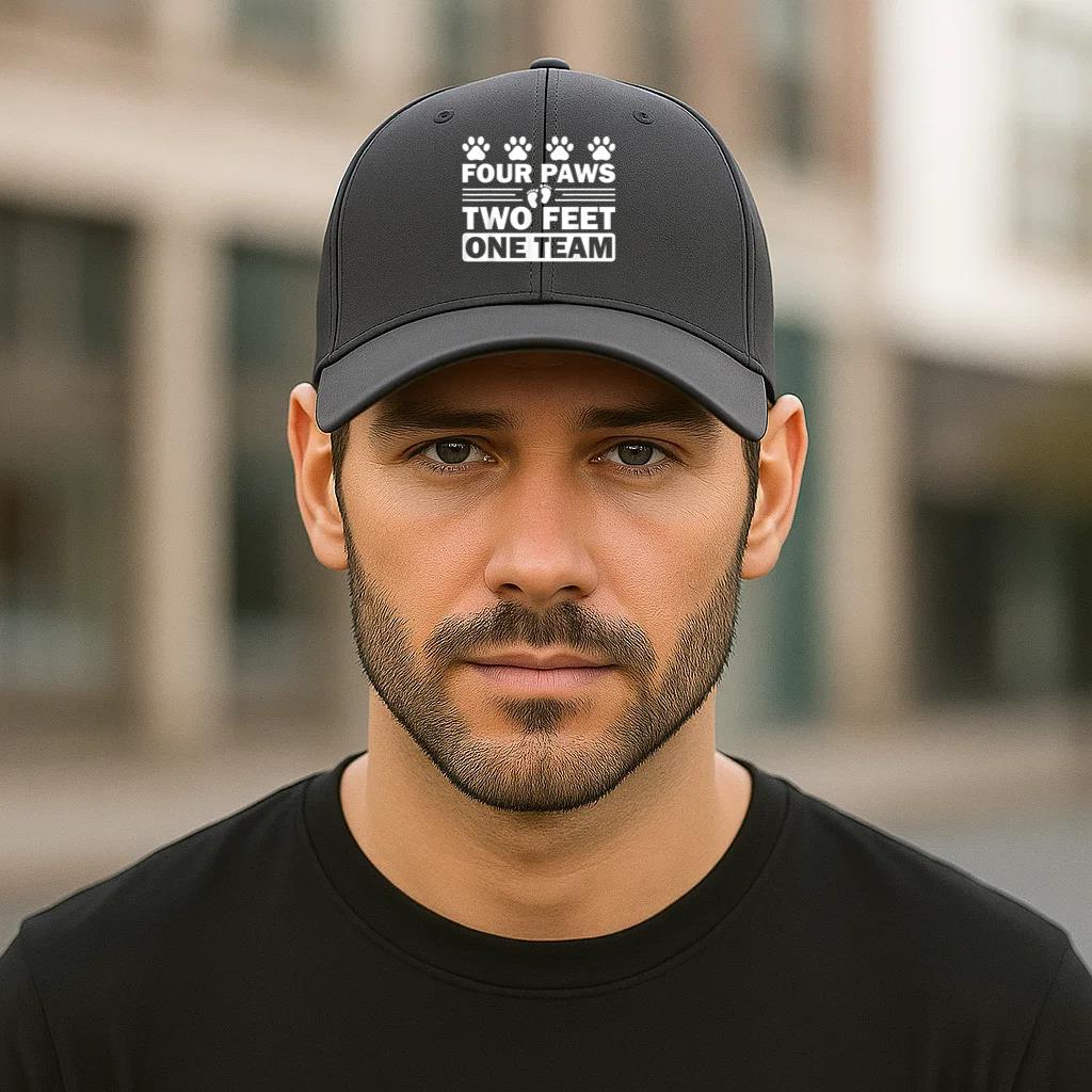 Top off any outfit in style , this Four Paws Two Feet One Team Dog Cotton Baseball Hat Cotton Baseball Hat is a must-have for sunny days or sporty looks.