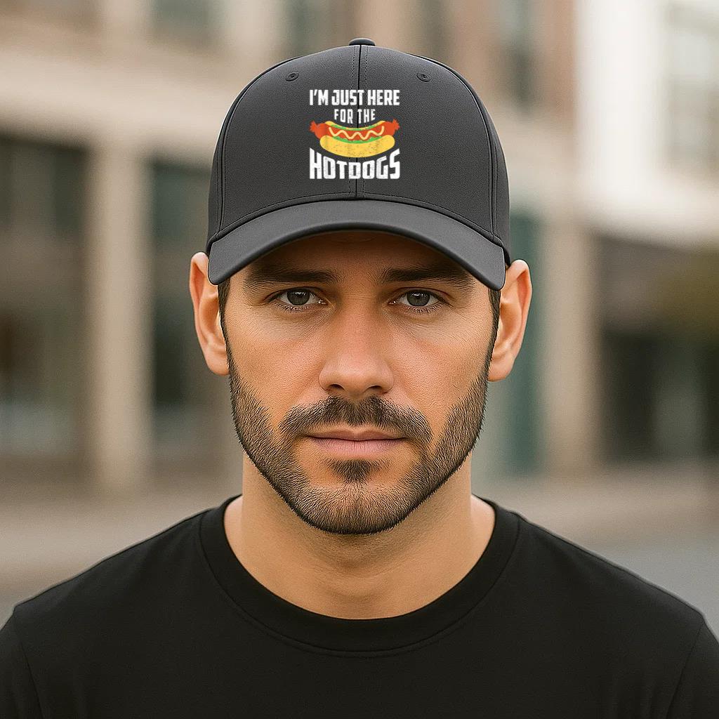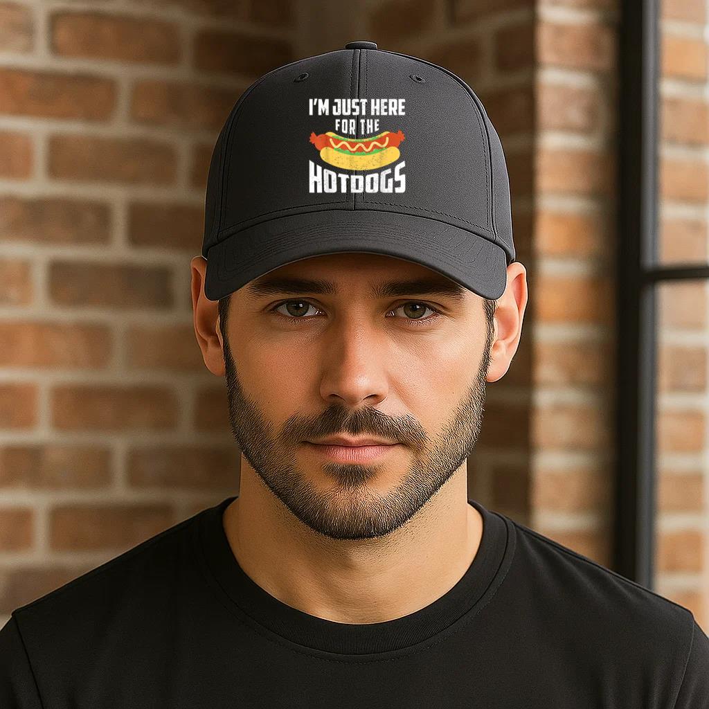 Top off any outfit in style , this Hotdog Im Just Here For The Hot Dogs Cotton Baseball Hat Cotton Baseball Hat is a must-have for sunny days or sporty looks.