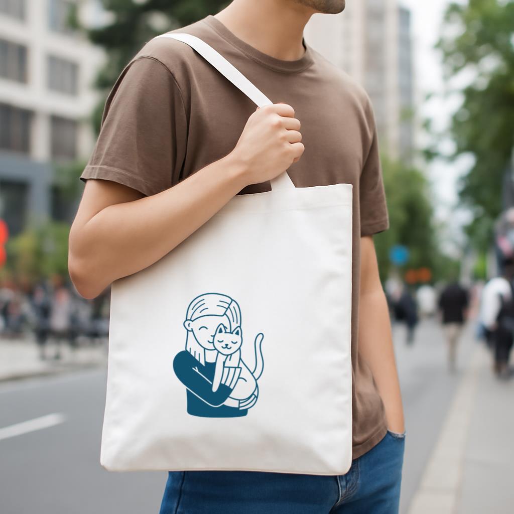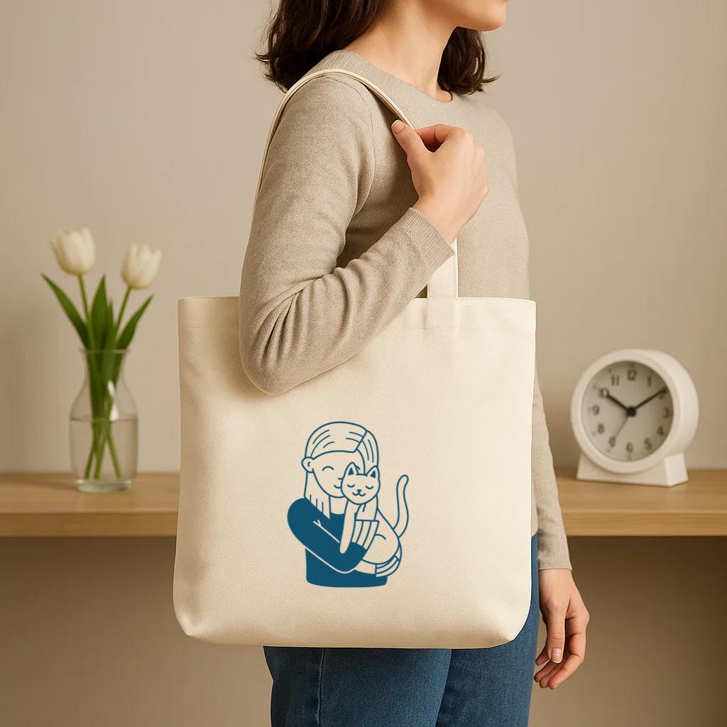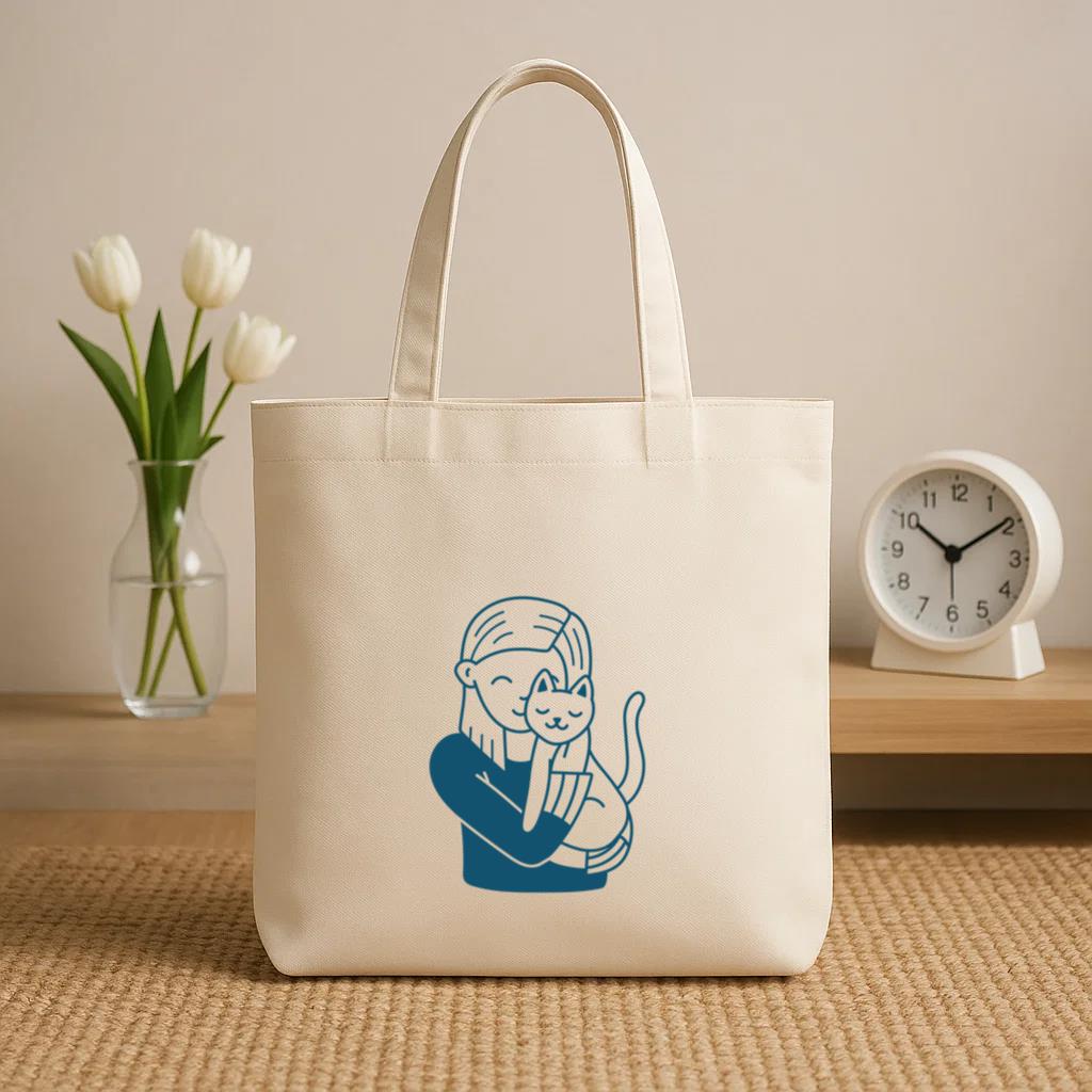 Chic, durable, and reusable , this Playful Cat And Owner Illustration Design Canvas Tote Bag Canvas Tote Bag is your daily go-to or a thoughtful gift for any occasion.