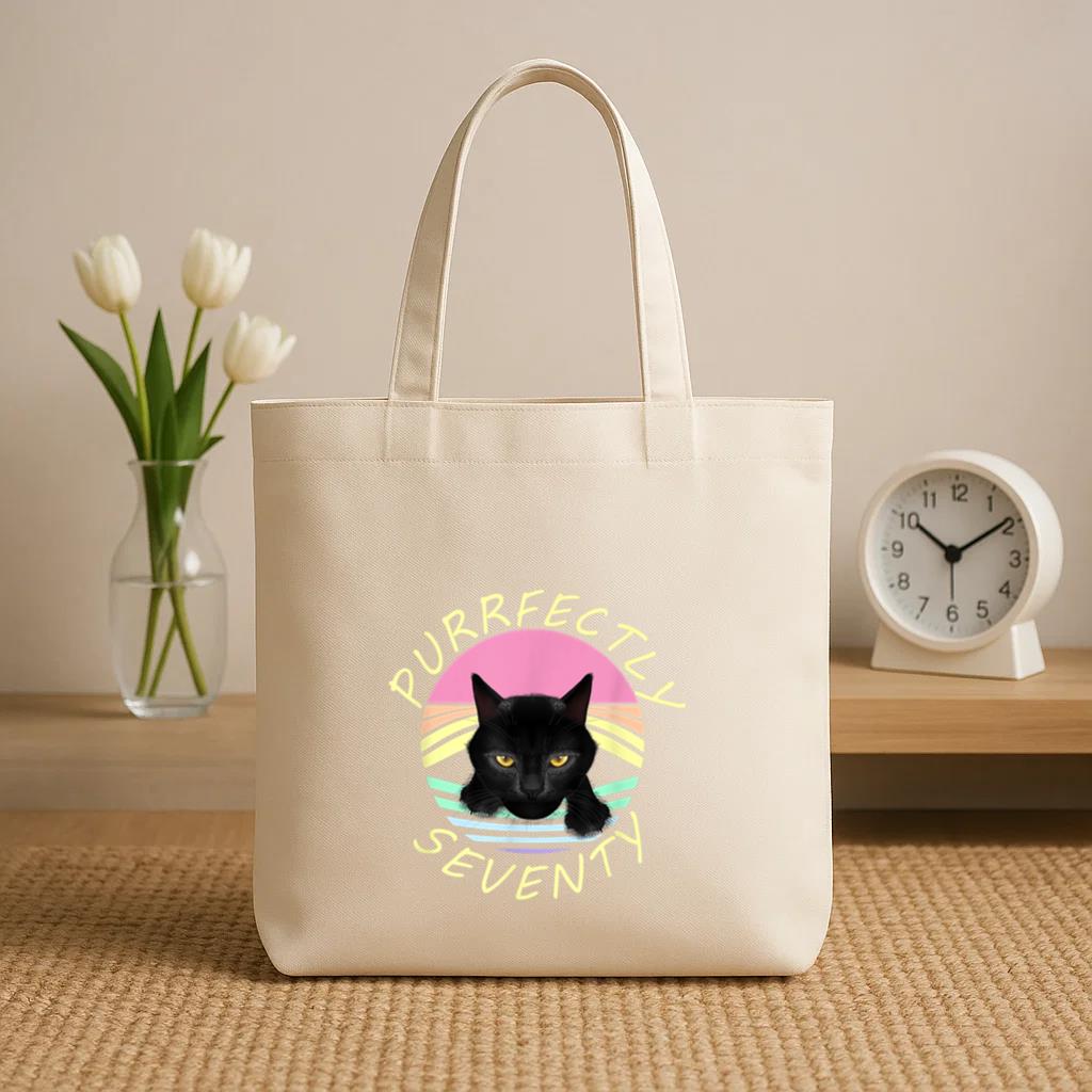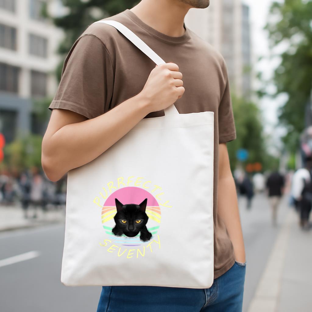 Chic, durable, and reusable , this Purrfectly Seventy Black Cat Rainbow Canvas Tote Bag Canvas Tote Bag is your daily go-to or a thoughtful gift for any occasion.