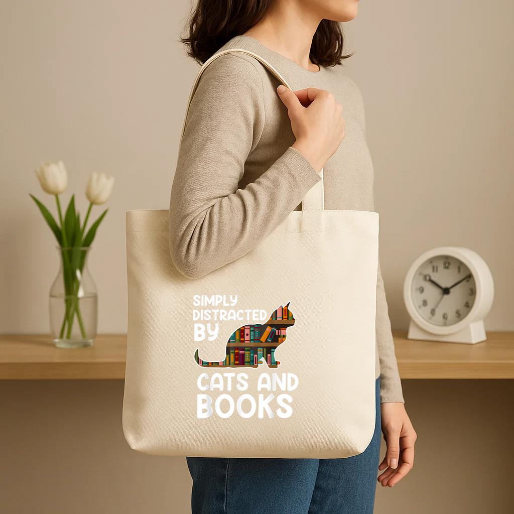 Chic, durable, and reusable , this Simply Distracted By Cats And Books Canvas Tote Bag Canvas Tote Bag is your daily go-to or a thoughtful gift for any occasion.